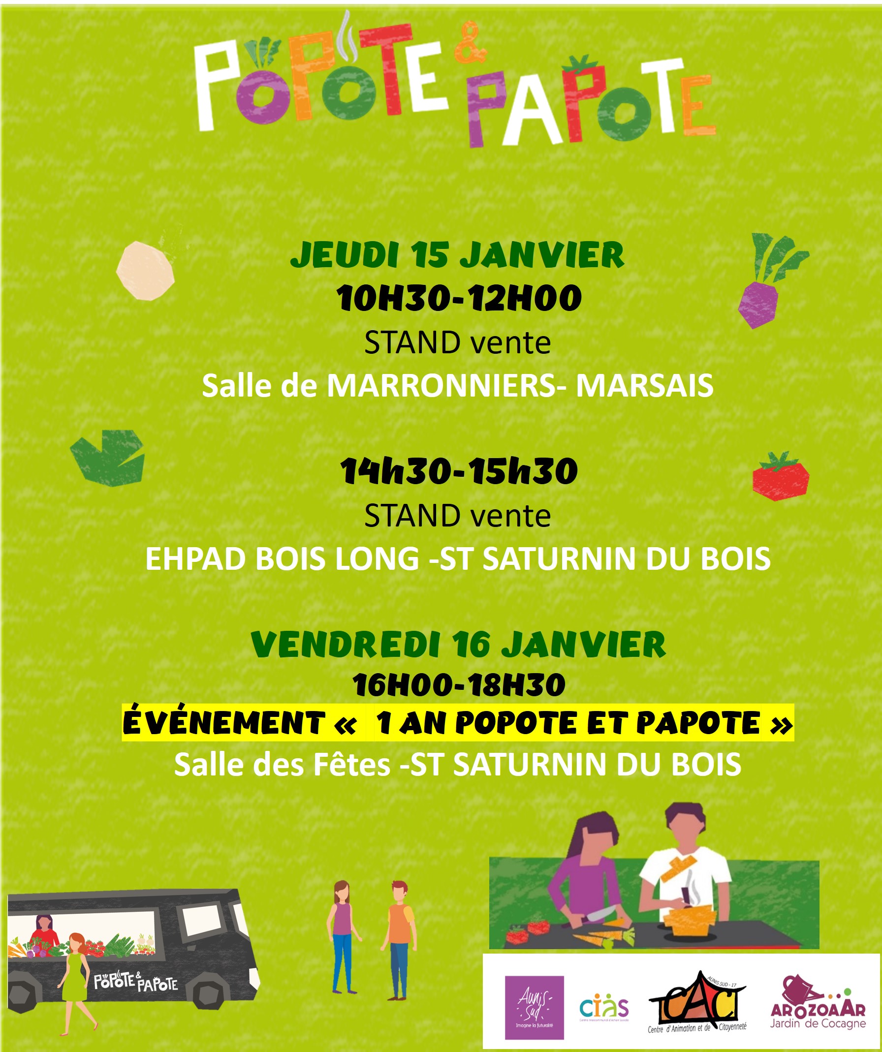Vous trouverez ci-joint le planning de la semaine Et l’équipe de Popote et Papote, Le CIAS, le CAC et Arozoaar ont le plaisir de vous inviter à un temps d’échange convivial pour fêter les 1 an de POPOTE ET PAPOTE Le 16 janvier 2026 à 16h à la salle municipale de St Saturnin du Bois Pour ceux…