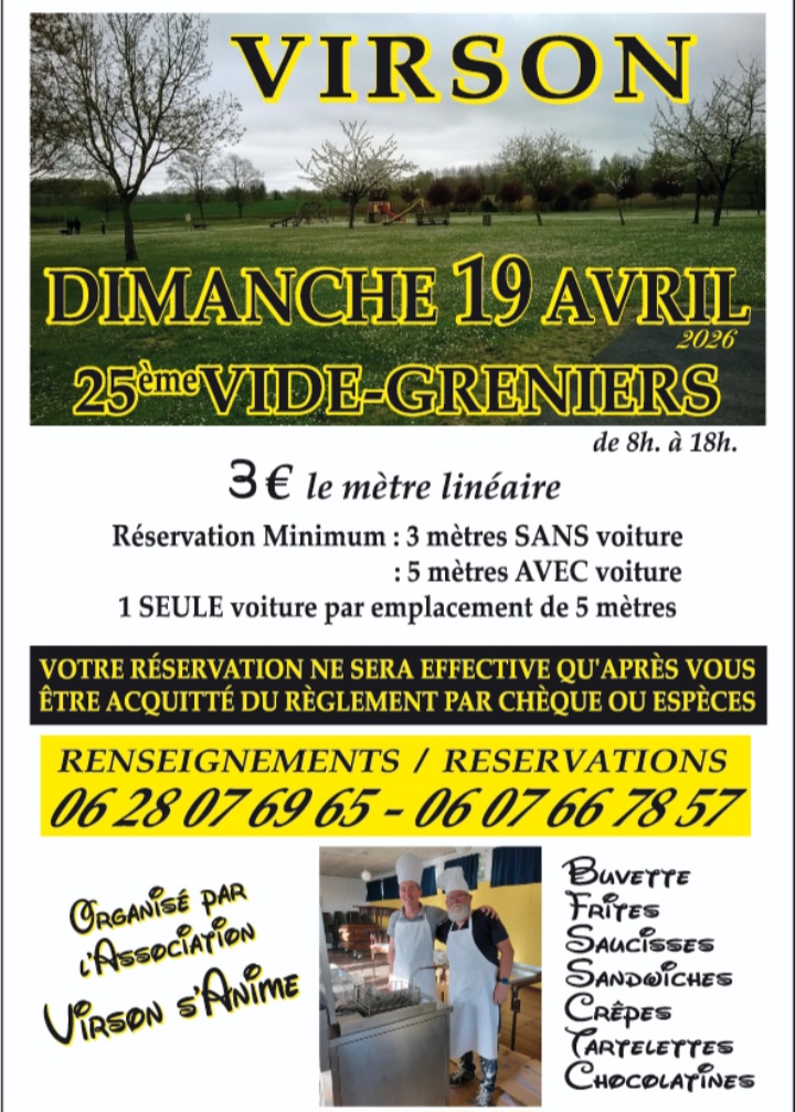 Actualités de Virson « Ludothèque FMR » RDV pour jouer « Spécial Carnaval » « Ensemble vers l’emploi » POPOTE ET PAPOTE Élections municipales : inscription liste électorale Cérémonie au Château des Granges : 1er février 2026 Santé en mouvement Don de Sang MANIFESTATIONS CONSERVATOIRE JANVIER 2026 Après le gel, pensez à inspecter vos canalisations ! Gourmette trouvée Voir toutes les actualités