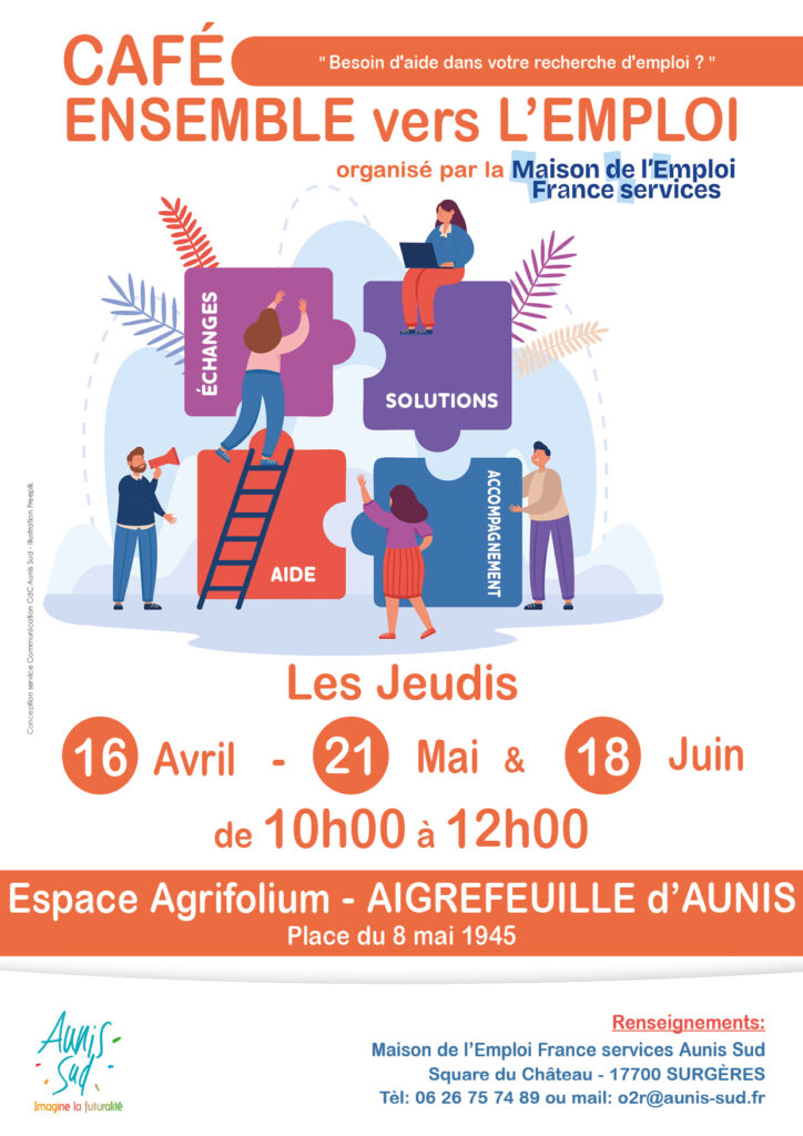 La maison de l’emploi Aunis sud organise des cafés « Ensemble vers l’emploi » à l’espace Agrifolium à Aigrefeuille-d’aunis.