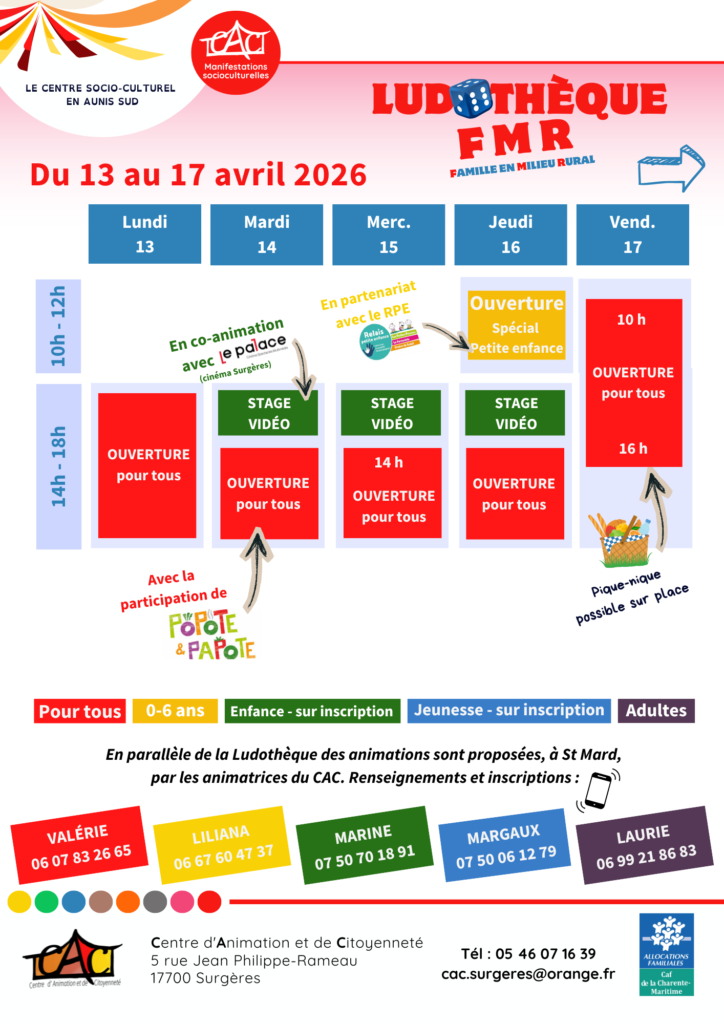 LUDOTHEQUE FMR du 13 au 17 avril 2026