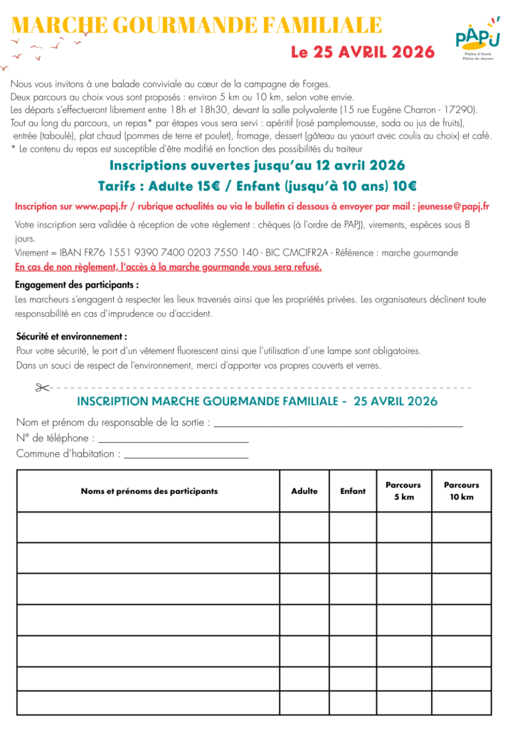 ⚠️ Places limitées, inscription obligatoire avant le 12 avril : https://www.papj.fr/marche-gourmande/