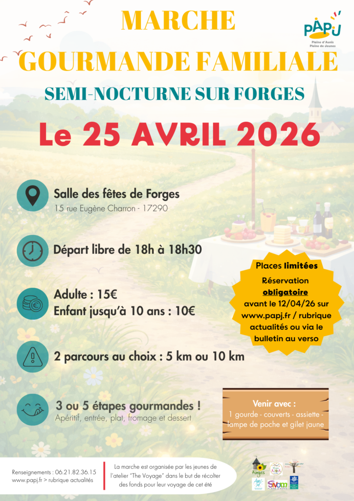 Rejoignez nous pour la Marche Gourmande Familiale le 25 avril 2026 à Forges ! 🥾✨